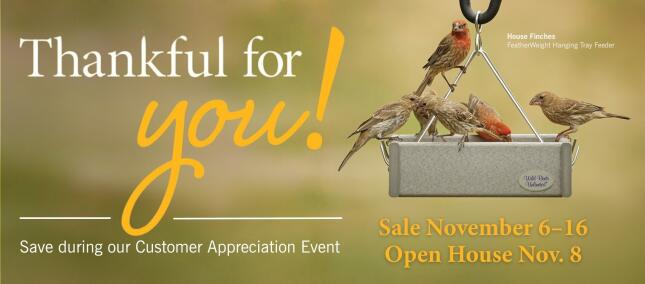 At Wild Birds Unlimited, we love sharing our passion for backyard birds and nature with you — our wonderful customers and friends. Your support and enthusiasm make everything we do possible, and we want to say thank you with a special celebration just for you!